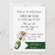 Convite de casamento divertido feito num tema casual, com uma garrafa de desenho de champanhe e sotaques verdes escuros num fundo branco. Personalize o texto para atender às suas necessidades de casamento.