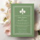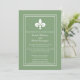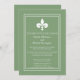 Encantem seus hóspedes com este Convite de Casamento Moss Green Fleur de Lis, projetado para papelaria de casamentos de inspiração francesa. Este belo convite mostra uma refinada flur de lis motif enquadrada por um sofisticado quadro de linha dupla, combinando a estética francesa com a elegante escrita e a tipografia moderna. Perfeito para a noiva e noiva, seu layout elegante e design moderno destacam seus detalhes de casamento com charme de eterno. Este convite totalmente personalizável é ideal para casais que buscam uma celebração romântica, inspirada na França. Perfeito para casais tendo um casamento temático de inspiração francesa.