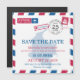 Uma Viagem criativa divertida, com o tema Celebração de Aniversário Salve a Data para enviar a todos os seus convidados com este design de Correio Vermelho e Azul. Mapa da Colômbia colocado no centro da design em cor azul mais clara. Para obter informações sobre alterações de design personalizadas pelo designer independente, envie um email para paula@labellarue.com ANTES de personalizar ou fazer um pedido.