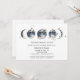 Um convite encantador com fases da lua e estrelas com efeito metálico dourado.