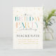 Apresentando uma cascata de estrelas caindo em tons de ouro e fontes coloridas de safra, este design de convite traz um toque celeste encantador ao seu evento.