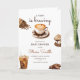 Celebre a chegada iminente de um pequeno com este adorável convite de chá de bebê temático de café, apresentando lattes quentes, café gelado, delícias de creme chantilly e grãos de café. A frase elegante 'Um Bebê Está Sendo Preparado' torna este convite perfeito para reuniões aconchegantes em casa ou chás de bebê estilo café trendy.