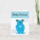 Urso azul bonito com pequenas bolhas azuis no fundo sotaque este chá de fraldas. Avise seus amigos e família sobre o grande evento.
