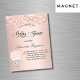 Para um chá de fraldas, comemorando uma menina. Um fundo de gradiente rosa dourado e esbatido. Decorada com poeira falsa, e uma linda menina elefante bebê em um balão de ar quente. Personalize e adicione o nome da futura mãe e os detalhes da festa. O nome e o texto: Chá de fraldas são escritos com um script de estilo manuscrito