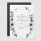 Trendy eucalipto verde e flores de papoila em tons pastéis chá de fraldas convite magnético com estrutura geométrica dourada e tipografia elegante para escrita manual.
