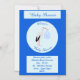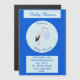 Este incrível convite de festas magnético apresenta uma imagem gráfica de uma bela Tempestade branca com penas de cauda pretas segurando-se em um pacote azul pálido de cobertores. Há um texto azul no pacote que diz "Menino". Esta design é perfeita para celebrar um chá de fraldas.
