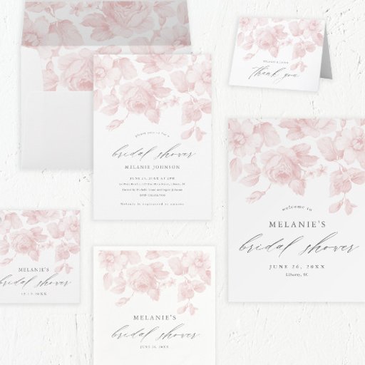 Convite Chá de panela Floral Cor-de-Rosa Elegante