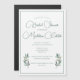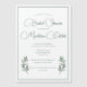 Um simples roteiro de caligrafia verde elegante com duas folhas de eucalipto aquoso em ambos os lados, no fundo, para decorar este belo e minimalista convite magnético de chá de panela de queda. Um belo e moderno convite para uma ocasião de jardim celebrando a noiva.