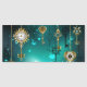 Chaves Douradas e antigas com engrenagens e marcadores penduram em correntes douradas sobre fundo verde luminoso.