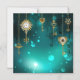 Chaves Douradas e antigas com engrenagens e marcadores penduram em correntes douradas sobre fundo verde luminoso.