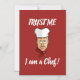 Cabeça de chef com chapéu, corcunda vermelha e texto personalizado.