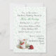 Convite doce do chá de casamento do tea party feito em um design floral verde da casa de campo e branco minúsculo chique. Os gráficos de um copo e de uma morango bonito de chá da porcelana decoram o canto de inferior esquerdo deste convite de vista elegante. Personalize todo o texto para serir suas necessidades do partido.