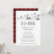Convite Churrasco Buffalo Wilderness Rustico I Do é ideal para uma festa com tema de montanha. Nosso evento inspirado na montanha apresenta uma cena de montanha e floresta ilustrada à mão com um fundo xadrez de búfalo inspirado em cabana, perfeito para a sua festa de churrasco de noivado I do BBQ.