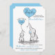 Convite do chá de fraldas. Caracterizando um momma e um bebé bonitos do elefante com os balões do coração dos azuis bebés. Imprima seu convidado com este convite querido. Lotes dos produtos de harmonização disponíveis. 100% customizável. Apronte para preencher as caixas ou para clicar sobre o botão da PERSONALIZAÇÃO para adicionar, mover, suprimir, resize ou mudar de alguns da pia batismal ou dos gráficos.