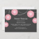 As lanternas cor-de-rosa brilhantes do partido acentuam este convite de festas do doce 16. Este convite é mostrado no papel básico; contudo, eu recomendo o peso e a textura do papel de linho. Se os artigos adicionais são necessários nesta coleção, apenas contacte-nos em prettyfancyinvites@gmail.com, com seu pedido.