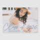 Comemore o formando com nosso cartão magnético de graduação horizontal de fotos na moda. O ímã de lançamento da graduação exibe a foto do cenário do formando com "Classe 2022" em uma cobertura azul de script de caligrafia moderna. Personalize o ímã de graduação moderno adicionando o nome do formando e o nome da escola. O design é perfeito para segundos graus e formandos universitários.
