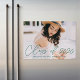 Comemore o formando com nosso cartão magnético de graduação horizontal de fotos na moda. O ímã de lançamento da graduação exibe a foto do cenário do formando com "Classe 2025" em uma cobertura verde moderna de roteiro de caligrafia. Personalize o ímã de graduação moderno adicionando o nome do formando e o nome da escola. O design é perfeito para segundos graus e formandos universitários.