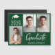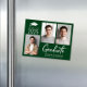 Cartão de anúncio magnético de graduação verde 2025 moderno, com 3 fotos e "Formando" em um roteiro branco contemporâneo ousado. Adicione o nome do formando, o ano de aula e a escola em tipografia branca simples.