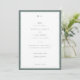 Este convite clássico de casamento apresenta um elegante design de borda escalpada e sotaques verdes suaves, criando um eterno e um aspecto sofisticado. Com tipografia minimalista e um layout refinado, é perfeito para casais que buscam elegância subestimada. Totalmente personalizável com seus detalhes de casamento, este convite é ideal para celebrações tradicionais e modernas. Perfeito para fazenda, campo ou temas formais de casamento.