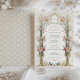 Este convite para o casamento é uma canvas romântica pintada com os tons suaves de um jardim inglês. O cor-de-rosa, o coral e o marfim florescem em cascata urnas de ouro, simbolizando o crescimento e o florescimento do amor. O arco floral, enfeitado com delicado verde, enquadra as iniciais do casal no estilo tradicional vitoriano, criando uma entrada convidativa para a celebração da unidade. Abaixo, uma cena tênue se desdobra com uma família de aves, ecoando o tema da união. Este design capta a essência da elegância eterno, perfeita para o casal que deseja misturar o charme clássico de uma era passada com a alegre promessa de seu futuro juntos.