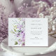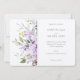 Este convite é uma celebração do romance clássico, com uma cascata de flores lilás de aquarela e folhas verdes macios que adornam o lado esquerdo. As flores exibem uma paleta de lavanda, mauve e periwinkle, colocada sobre um fundo branco intocado, criando uma sensação elegante de jardim. O lado direito do convite é reservado para os detalhes do evento, belamente escrito em uma fonte eterno com uma dica de púrpura que complementa o trabalho de arte floral. É uma mistura perfeita de elegância tradicional e graça botânica, convidando convidados para uma união alegre.