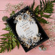 Convite Clássico De Casamento De Russo Floral Clássico 5. Este elegante convite de casamento apresenta um design floral eterno com marfim mole, ouro e cinza prateada. Definido em relação a um fundo preto clássico, ele enquadra lindamente os detalhes do evento em uma sofisticada combinação de fontes serif e script. Perfeito para um casamento romântico de jardins, transmite elegância, calor e celebração com encanto refinado.
