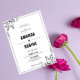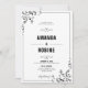 Um convite de casamento branco e preto eterno com tipografia ousada moderna, cantos decorativos ao estilo vintage e um layout minimalista limpo. Perfeito para casamentos clássicos, formais ou negras.