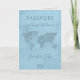 Design de convite de passaporte único e moderno de Savanamm, com mapa mundial na dentro de fotografia de frente e praia. Adicione sua foto e seu código QR.