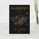 Modern Boho World Map Invitation Destination, como passaporte, com seu monograma. Adicione seu código QR. Cor de fundo preta
