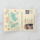 Retro World Map Convite Destino de Casamento, como passaporte, com seu monograma. Adicione seu código QR. Cor de fundo verde do sábado