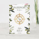 Destino de Casamento de Convite Floral Moderno e Boho, como passaporte. A crista monográfica em comutação na primeira página, com ilustrações de Grécia. Design perfeito para o seu casamento de praia de verão na ilha grega Santorini, ou Mykonos. Adicionar o código QR do seu site de casamento