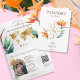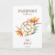 Destino de Casamento de Convite Floral Moderno e Colorido, como passaporte. A crista monográfica em compass na página da frente, com estrelitzia. Design perfeito para o seu casamento na praia de verão. Adicionar o código QR do seu site de casamento