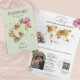 Destino de Casamento de Convite Floral Moderno, como passaporte. O mundo ouro mapeia a primeira página, com flores tropicais em segundo plano verde. Design perfeito para o seu casamento na praia de verão. Adicionar o código QR do seu site de casamento