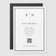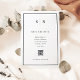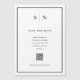 Esses cartões salve a data magnéticos elegantes e modernos apresentam um simples design de texto minimalista preto-e-branco, com um quadro clássico na fronteira e um local para adicionar seu código QR onde seus convidados podem encontrar mais detalhes de casamento. Adicione suas iniciais ou monograma para torná-las completamente suas.