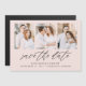 Anuncie seus futuros nupciais em estilo com nossa imã salve a data de fotos do Elegant Script. Os imã salve o dia elegantes exibem 3 de suas fotos de noivado favoritas com "salve a data" em um roteiro de caligrafia preto e moderno contra um fundo cor-de-rosa. Personalize o imã adicionando seus nomes, data do casamento e local do casamento.