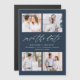 Anuncie seus futuros nupciais em estilo com nossa imã salve a data de fotos do Elegant Script. A elegante imã salve a data 4 de suas fotos de noivado favoritas, enquadradas em branco com "salve a data" em um roteiro de caligrafia branco e moderno contra um fundo de marinho. Personalize o imã adicionando seus nomes, data do casamento e local do casamento.