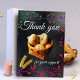 Expresse sua gratidão com a elegância rústica da fazenda através deste cartões de agradecimentos inspirado no trigo. O cobrir frontal apresenta um fundo preto brilhante e rico com um cinturão de trigo ouro claro no canto inferior esquerdo. No centro, um espaço fotográfico personalizável exibe um quente pão assado recentemente, enquadrado com uma delicada borda de videira em tons verdes claros, vermelhos e roxos suaves. Dentro, o painel esquerdo pode segurar uma foto ou ilustração de fazenda pessoal, enquanto o painel direito está reservado para sua mensagem de obrigado personalizável. As costas continuam o tema rústico com detalhes simples de trigo, fazer que este cartão dobrado seja uma escolha perfeita para os donos de casa, padeiros, vendedores de mercado de fazendeiros e qualquer um que ame compartilhar gratidão com um toque de charme do país.