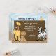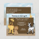 O convite de safari divertido tem uma girafa, leão, zebra, pássaro da selva, e elefante com cores vivas e cena do deserto e do céu no fundo. Perfeito para meninos ou qualquer aniversário de idade. O poema de corte na parte traseira pode ser editado ou excluído. Personalizar online!