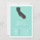 Um aqua chique e um convite branco do casamento, caracterizando uma silhueta cinzenta de Califórnia com um coração. A parte traseira do convite tem um aqua simples e um design branco do impressão da viga. Contacte-me e eu posso mover o coração para onde nunca você o precisa de estar.