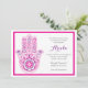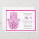 As informações do seu partido são impressas ao lado de um convite colorido de hamsa rico.