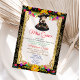 Convite Colorido Floral Preto e Dourado para Quinceañera