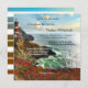 Convite de casamento com uma pintura de um farol em um penhasco no oceano em cores vibrantes. Perfeito para um casamento de praia, náutica ou destino. Este convite tem uma placa RSVP correspondente.
