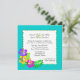 Bonito convite de casamento tropical feito em aquamarine. Gráficos de uma área de texto branco de borda verde, no meio, são decorados com uma flor de hibisco colorida, no canto inferior esquerdo. O texto em preto está pronto para personalizar o seu casamento de destino tropical. Produtos de casamento correspondentes disponíveis.