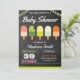 Incomode seus convidados com este chá de fraldas colorido, convidando com pop de gelo bonitinhos com tipografia moderna contra um fundo de quadro. Basta adicionar os detalhes do seu evento neste modelo fácil de usar para torná-lo um convite de tipo único. Sacudir a placa para revelar um padrão colorido de listras na parte traseira da placa.