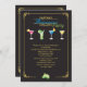 Um sofisticado convite de festas coquetel perfeito para eventos corporativos, festas de férias e arrecadadores de fundos e muito mais. O fundo de ébano tem uma estrutura de ouro e apresenta quatro coquetéis coloridos.