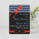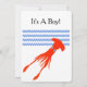 Junte-se nos para que um chá de fraldas comemore esse bebé novo! Que melhor animal para o anunciar do que um calamar colossal? Com o calamar alaranjado brilhante e as vigas azuis pastel em um fundo preto, este convite faz uma indicação corajosa.