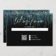 RSVP Abstrato Moderno - Uma grinalda ousada e irregular em verde azul brilhante desce pela página, em caligrafia manuscrita está "deixe-nos saber" - iniciais do casal no topo - o resto do texto é simples e limpo - tudo em um fundo preto. Papelaria de casamento elegante.