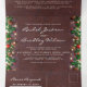 3 em 1 casamento no inverno, três vezes o convite com fundo de madeira escura, galhos festivos de árvores de natal, decorações de árvores vermelhas e douradas, luzes cintilantes de cordas, seus detalhes de casamento, um convite de casamento e um cartão postal rsvp para seus convidados cortarem e enviarem de volta.