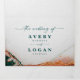 Abstrato Eteral Moderno - Chamas De Casamento Com Três Dobradiças De Altura Escura E Cobre. Este convite de casamento moderno inclui todas as opções que você precisa em um design. Cartão RSVP, Informações, Foto do Casal, Convite de casamento, tudo em um! É belistificado pintado à mão com cores ricas que são perfeitas para o outono ou o inverno. Mostrada na Coloração da Paleta de Cores do Casamento do Teal Escuro de: Verde-Cheia-Escuro, Ferrugem-Cobre, Dourada-Posta, Grove de Amêndoa e bege-Bisque. Com detalhes falsos da folha de brilho metálica, e uma fonte de script de assinatura maravilhosa com caudas, a coleção de casamentos de cor aquática etérea certamente fará seu casamento memorável e bonito! Para ver mais, procure as coleções de casamento de 2021 da Chic Paperie para ver mais designs de tendências e cores de casamento para este ano.