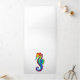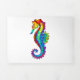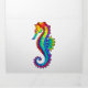 Articulação artificial, brilhante, arco-íris, cavalo de mar poligonal sobre fundo branco. Tatuagem brilhante.